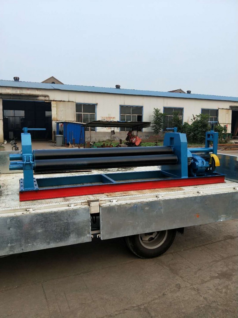 半自动卷板机结构形式为三辊对称式。上辊在两下辊中间对称位置作垂直升降运动,通过丝杠实现上辊的升降,便使所卷制的材料变形,该卷板机是用于金属板材型材弯曲、变型的一种通用设备,它借助于专用工具或其它设备来完成板材端面的预弯,可以卷制圆形、弧形工件,在石油、化工、锅炉、水电、造船、工业设备安装以及机械制造行业中有着广泛的应用。该机器采用倒顺开关(已安装在卷板机上)来实现卷板的正、反转,检查机器无误后,调节丝杠让上辊压至板材表面,把倒顺开关打到“倒”“顺”视现场板材的放入端而定让电动机正转还是把反转,卷制一边后,手动调节丝杠让上辊压紧板材在“倒”“顺”卷制,如此循环直至达至要求为止。
